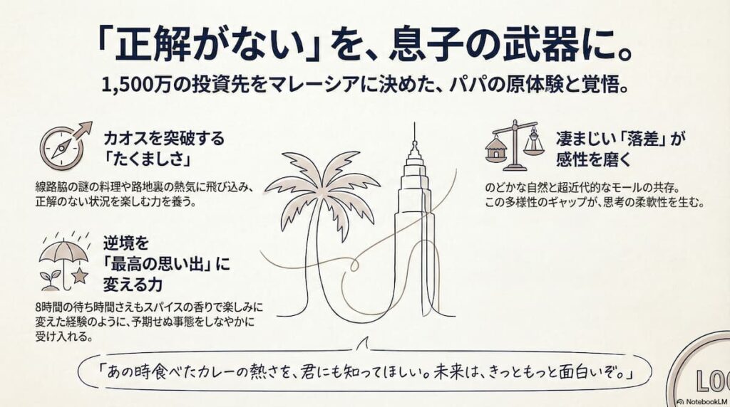 留学先をマレーシアに決めたのは、安さ(消去法)だけではありません。1,500万の教育資金を投じる理系パパが、20年前にマレー鉄道で経験した「カオス」と「たくましさ」の原体験を語ります。欧米のモノサシでは測れない、アジアで学ぶ「真の優位性」とは?