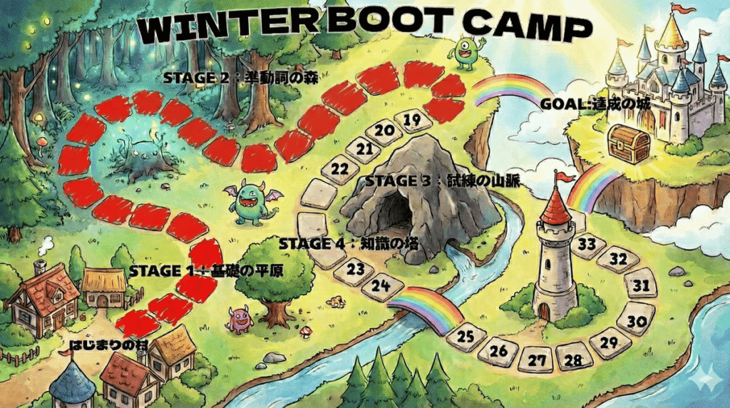 さて、前回12/30(7日目)の時点で14講まで進んでいたスタサプ。 その後、大晦日も元日もサボることなく、きっちり2講ずつ消化しました。そしてついに、中盤の山場である「試練の山脈」へと足を踏み入れています。