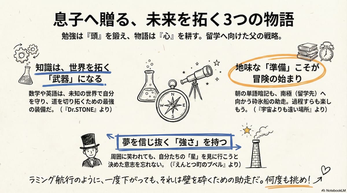 【海外留学へのマインドセット】教科書より心に響く。息子に選んだ3つのアニメ名作選