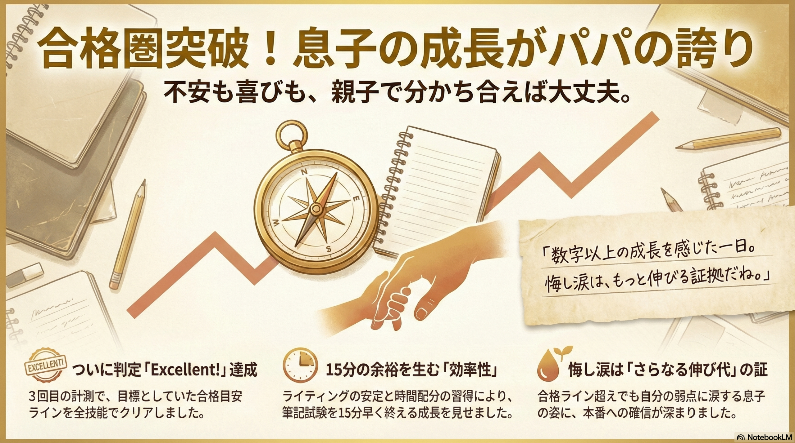 3回目の計測で、合格の可能性は「事実」として見えてきました。 ここからは、先生との「あたたかい対話」で自信(翼)を育みつつ、AIという「客観的な物差し(コンパス)」で正確な航路を刻むフェーズに入ります。