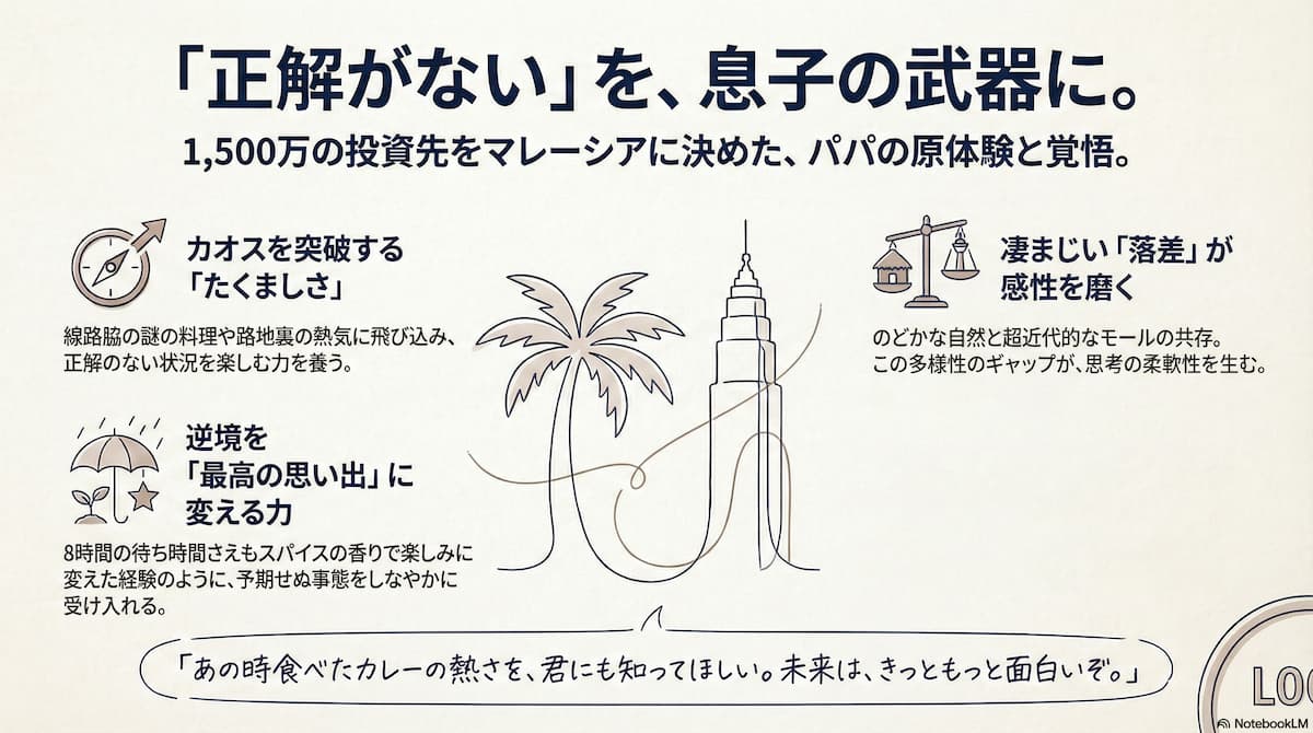 理系パパとして考えたとき、マレーシアは「学費が安い」という消去法ではありません。 「多文化のカオスの中で、しなやかに、たくましく生きる力」 これを手に入れられる場所として、これ以上の投資先はない。それが、私の導き出した「最適解」です。