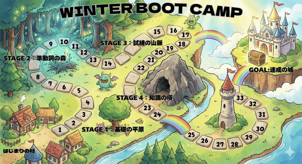 | 期間 | 冬休み(12/25〜1/7)の14日間 | 集中して基礎を一気に固める |